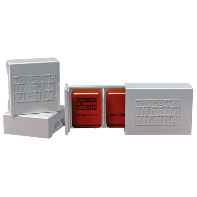 The one-fits-all rosin for many, many climatic conditions. Thomastik's neu entwickeltes premium Rosin gibt es für Violine (NR.TIVO01) inklusive Booster, für Viola (NR.TIVA01), für Cello (NR.TIVC01) und bald auch für Bass. Die Rezeptur ist jeweils speziell auf die einzelnen Instrumente abgestimmt, damit Sie noch mehr klangliche Vielfalt aus Thomastik-Infeld-Saiten herausholen können. Das Kolophonium unterstützt Fokus, Bogenansprache und Brillanz, hilft die Resonanz der Saiten zu verbessern und erleichtert eine klare Artikulation.
