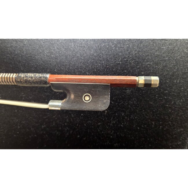 Beautiful old german cello bow stamped "ALBERT KRAMLING". 80.17gr. Round stick, silver mounted.