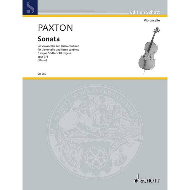 Stephen Paxton was een van de belangrijkste Engelse componisten voor cello in de overgangsperiode tussen de barok en de klassieke tijd. Omdat het cellorepertoire niet veel zeer vroege klassieke werken bevat, vullen zijn sonates opus 3, geschreven voor amateurcellisten en studenten, een belangrijk gat in het lesrepertoire. Deze driedelige sonate opus 3/3 is zeer geschikt voor de cello en onderscheidt zich door zijn elegante en aantrekkelijke melodieën. De sonate kan worden gespeeld met de eerste vier vingerposities. Als cellist was Paxton zeer vertrouwd met de technische mogelijkheden van zijn instrument en wist hij het te laten zingen met eenvoudige en effectieve figuren. Het eerste deel bestaat uit twee delen en heeft een expressief middendeel in c mineur. Het langzame deel gebruikt een Iers volkslied ('Gramachree'), met twee dansdelen (Menuet 1 en 2) aan het einde. Deze nieuwe editie reproduceert alle details van de eerste gedrukte versie, met slechts enkele dynamische aanduidingen tussen vierkante haken. De baspartij is uitgeschreven in de stijl van een vroegklassieke klavierbegeleiding om de galante rococo-stijl van het stuk te benadrukken.