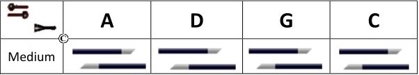 Optioneel is de A snaar verkrijgbaar met Alu wikkeling (90A) en met een hogere snaarspanning (91) en de G- en C snaar met zilver wikkeling.